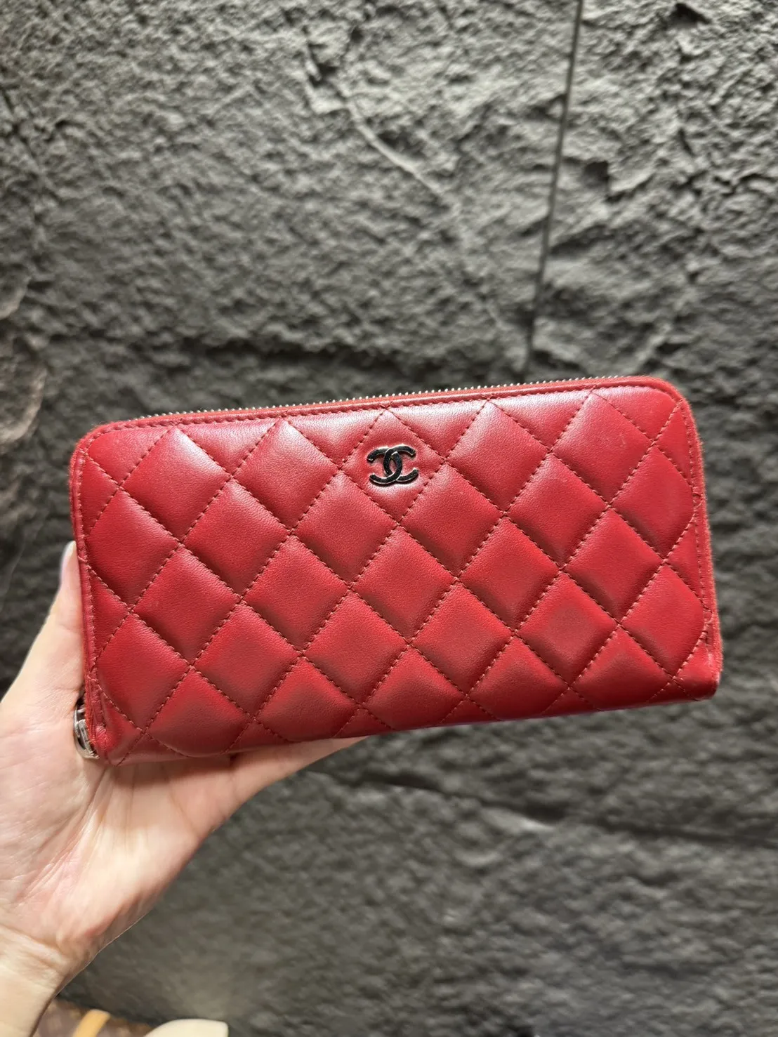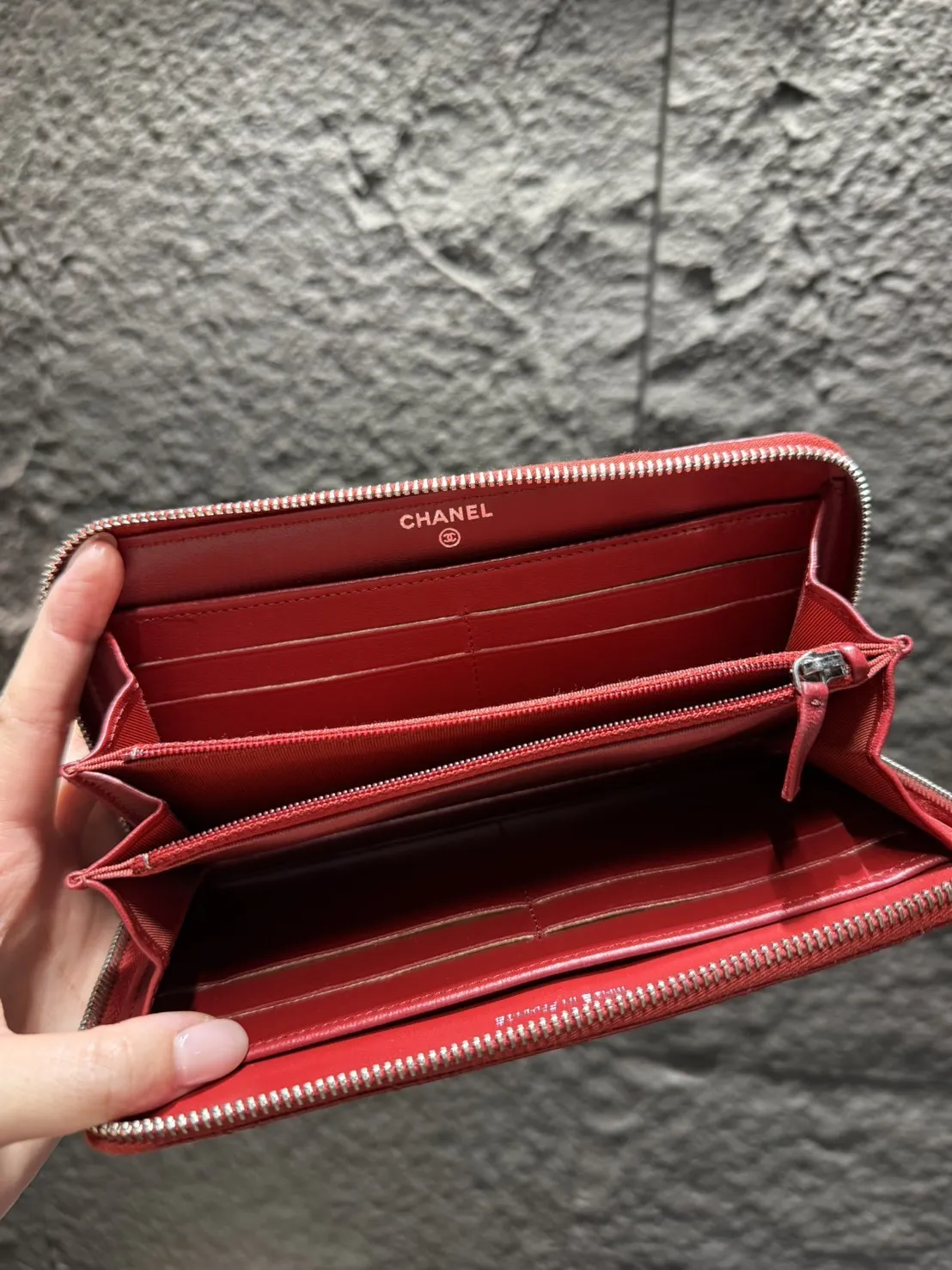 J10 Chanel紅色羊皮銀釦拉鍊長夾 保卡 15開 有盒 95成新